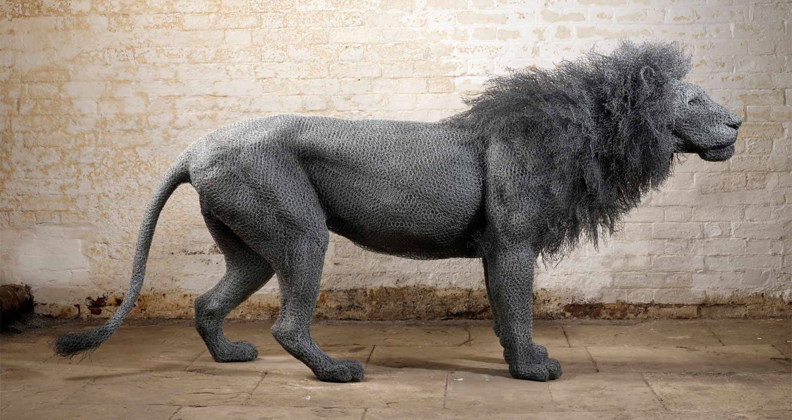 Kendra recubre una estructura de acero con capas de alambre galvanizado para crear estas fieles reproducciones a tamaño natural. En ellas refleja perfectamente el movimiento, las posturas y gestos de los animales.